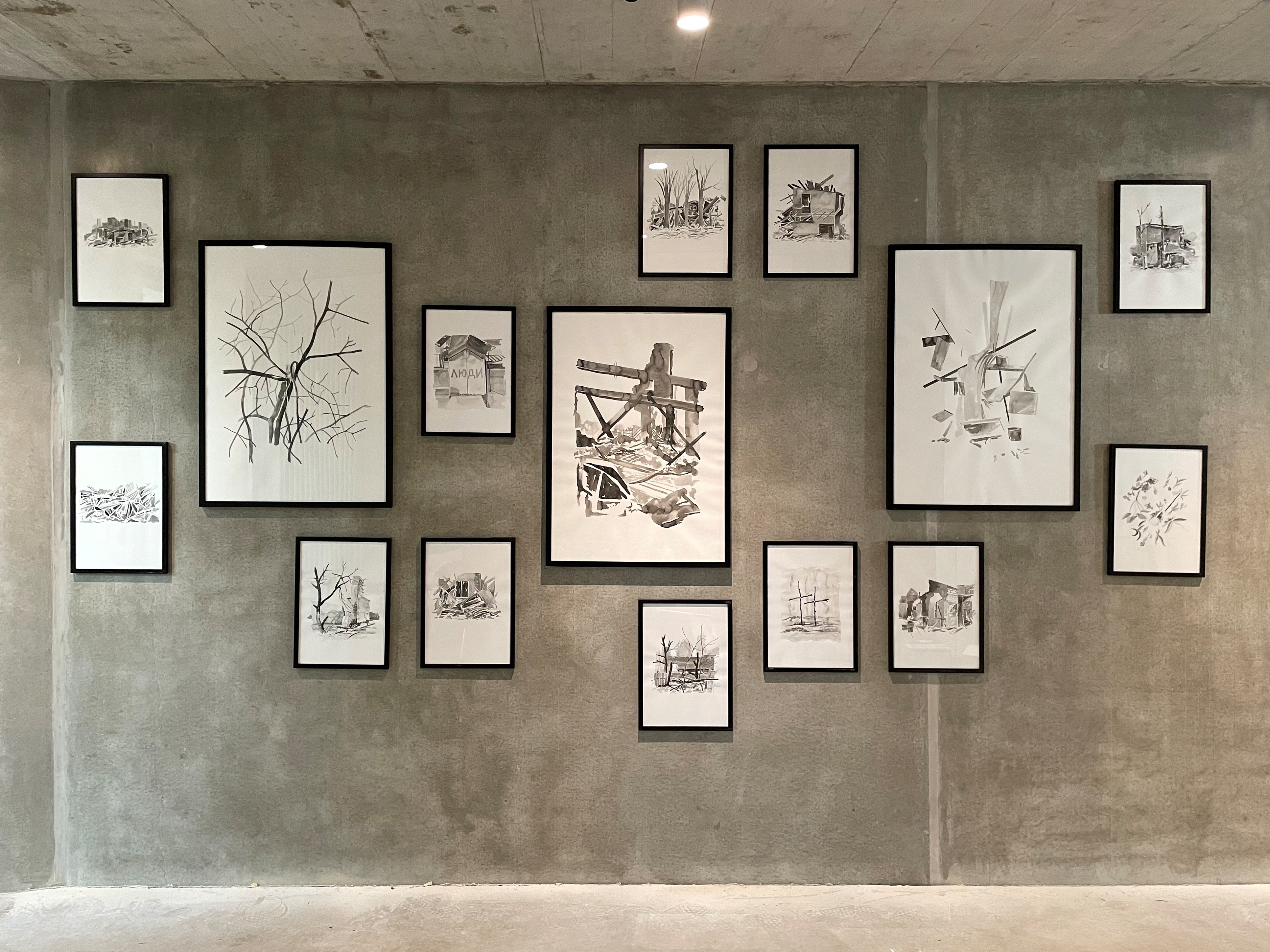 These works are an allusion to the events happening in Ukraine. In the photo galleries of our smartphones, personal photos mix with images of destroyed architecture from the internet, war memes, corpses of Russian soldiers, and screenshots of texts about aid. By turning the inside out, massive chunks of metal and concrete mix with dead bodies, and bombed and mutilated private interiors become accessible testimonies for everyone.